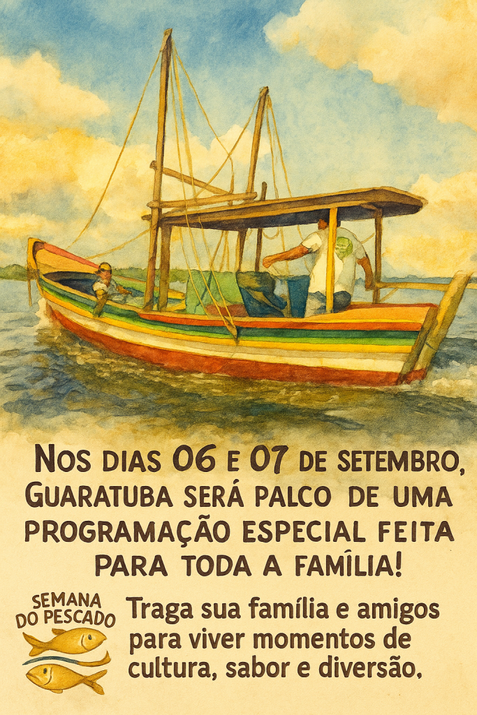 O Mercado Municipal de Guaratuba será palco de uma grande festa nos dias 06 e 07 de setembro, com uma programação voltada para toda a família. O evento integra a Semana do Pescado, prevista em lei federal, e conta com a parceria da Prefeitura Municipal, da Secretaria de Pesca e Agricultura e do Ministério da Pesca.