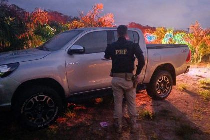 PRF encontra picape furtada escondida em plantação às margens da BR-101, em Garuva