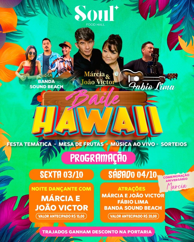 Além da música, o Baile do Havaí contará com mesa de frutas frescas, decoração temática e brindes especiais ao longo da noite.