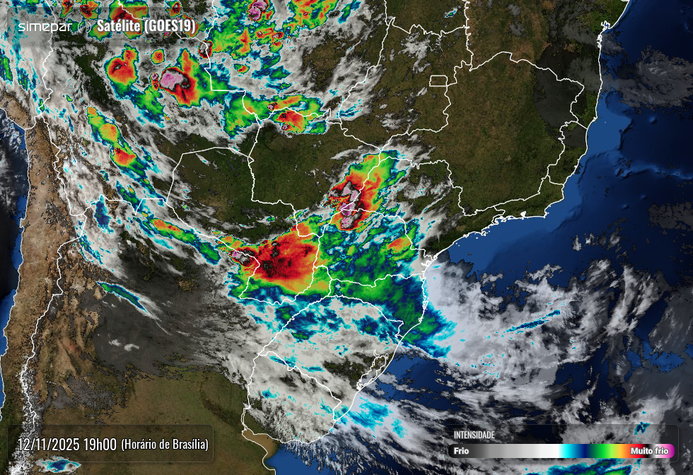 De acordo com o Simepar, a quinta-feira (13) será marcada por tempo bastante instável em todo o Paraná. O ingresso de calor e umidade vindo do Norte do Brasil mantém os índices de instabilidade elevados em todas as regiões do estado. Nestas condições, são esperadas pancadas de chuva acompanhadas de raios em vários momentos do dia, e não se descarta a ocorrência de algumas tempestades localizadas.