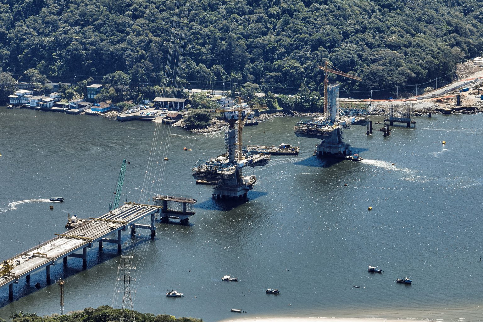 Trecho estaiado avança sobre o canal de navegação e obra já soma mais de 670 metros executados
