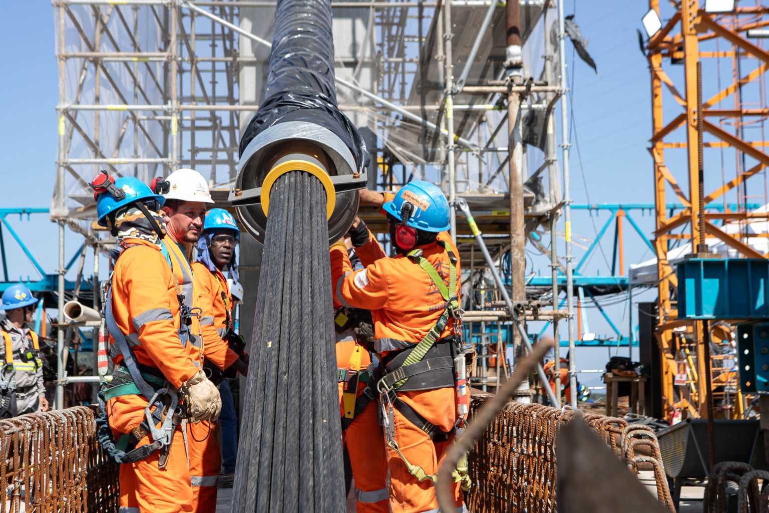 “Já instalamos o primeiro par de estais, que é o primeiro conjunto responsável por suportar o tabuleiro da ponte. Essa é uma das etapas mais complexas e exige precisão milimétrica, já que qualquer desalinhamento pode comprometer a estrutura”, destacou.