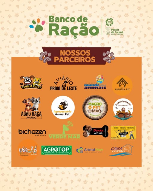 Entre os parceiros que contribuem com o Banco de Ração estão pet shops, aviários, clínicas veterinárias e empresas da região, como: Aviário Ipanema, Pet Shop Casa Pontal, Clínica Animal Prev, Agropecuária e Distribuidora Agrotop, Bicho Zen Pet Store, entre outros.