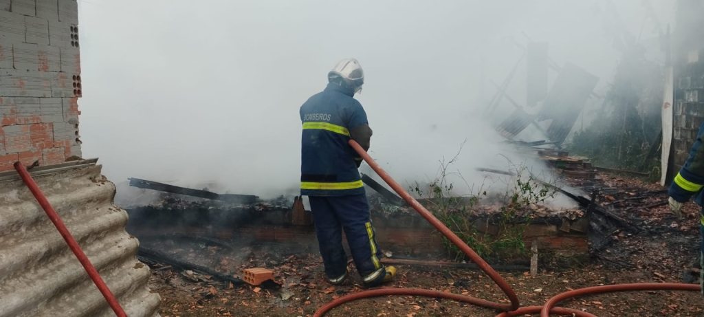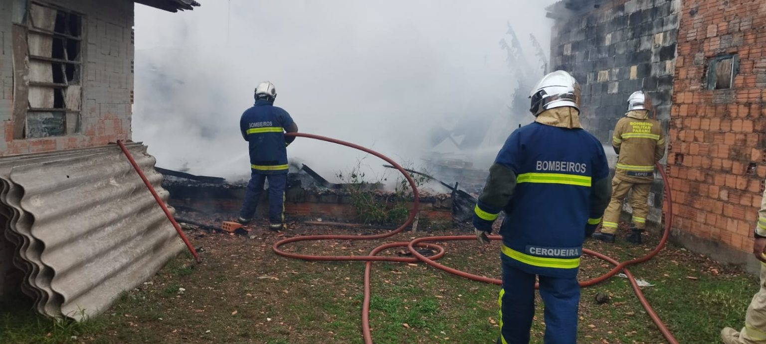 Na manhã deste sábado (06), um incêndio de grandes proporções destruiu completamente uma residência no bairro Mirim, em Guaratuba, nas proximidades do aeroporto. Equipes do Corpo de Bombeiros atuaram no combate às chamas e no rescaldo do local.