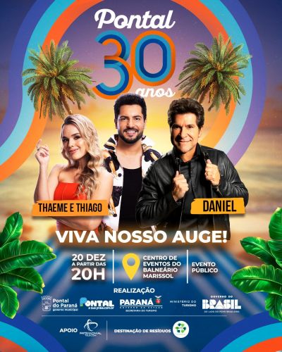 Para marcar a festa, o público poderá acompanhar shows do cantor Daniel e da dupla Thaeme & Thiago, atrações que abrem oficialmente as festividades do verão paranaense e prometem lotar o espaço de eventos.
