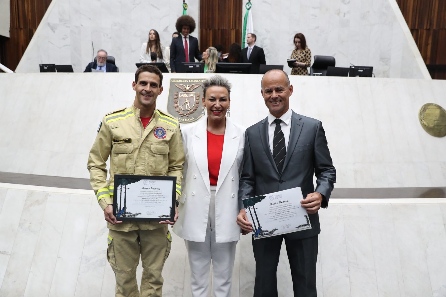 “É com imensa alegria e orgulho que entregamos Menções Honrosas a dois grandes representantes da cidade de Londrina e do nosso querido 3º Batalhão de Bombeiros. Que suas trajetórias de sucesso também no esporte continuem inspirando outras pessoas”, destacou a deputada Cloara Pinheiro.