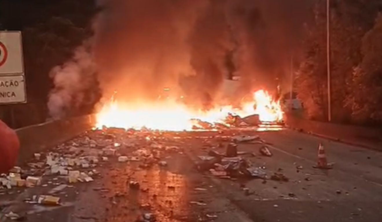 Imagens que circulam nas redes sociais mostram um dos caminhões em chamas e parte da carga espalhada pela pista. Equipes de resgate da Arteris Litoral Sul, do Corpo de Bombeiros e da PRF atuam no local no atendimento às vítimas e na remoção dos veículos.