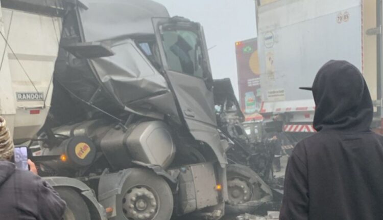 De acordo com informações preliminares da CCR ViaCosteira, 13 veículos estariam envolvidos no acidente. Já a PRF aponta que o número pode chegar a 15. Entre os veículos atingidos estão caminhões, carros de passeio e utilitários. Imagens divulgadas nas redes sociais mostram a violência do impacto, especialmente em um dos caminhões, que ficou com a cabine completamente destruída.