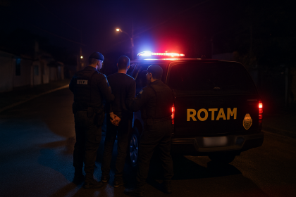 Durante a abordagem a um casal, nada de ilícito foi encontrado. Porém, em consulta ao Sistema SESP — banco de dados da Secretaria de Estado da Segurança Pública do Paraná — foi constatado que o homem possuía mandado de prisão em aberto pelo crime de roubo.