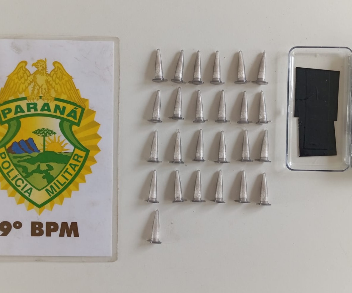 A equipe policial se deslocou até o endereço indicado, na Rua Pato Branco, onde, acompanhado pelo suspeito, localizou outras 19 buchas de cocaína escondidas na garagem.