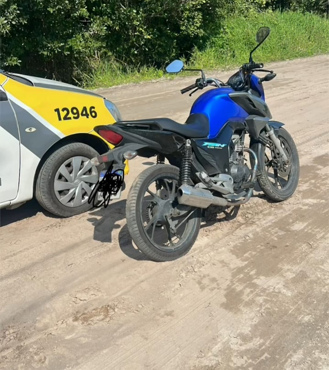 Nesta quinta-feira (21), por volta das 14h, a Patrulha Comercial da Polícia Militar de Guaratuba realizava patrulhamento na Rua Maringá, próximo ao ginásio de esportes do bairro Figueira, quando avistou uma motocicleta com escapamento livre, alvo de diversas denúncias da comunidade.