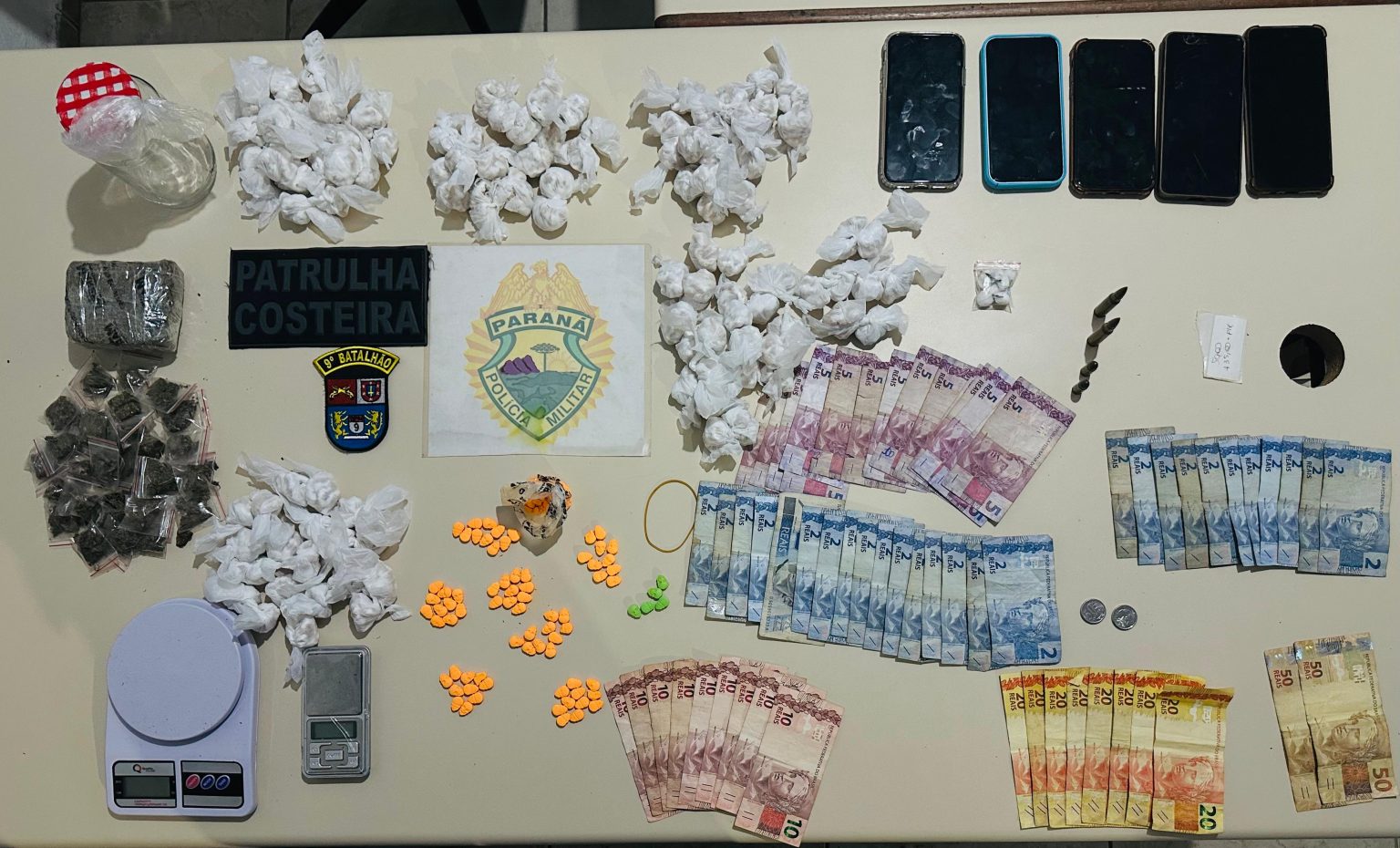Diante da materialidade e dos indícios de tráfico, todos os envolvidos foram detidos, informados de seus direitos constitucionais e encaminhados à 8ª Delegacia Regional de Polícia Civil de Guaratuba, junto com os materiais apreendidos, para as devidas providências.