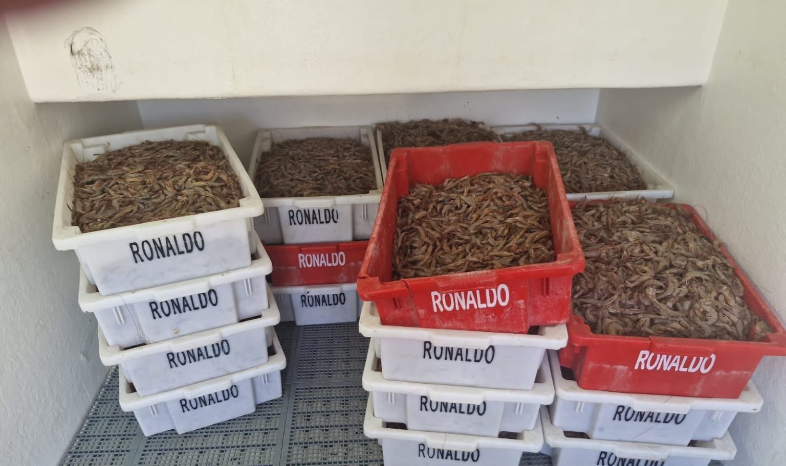 Entre o material apreendido estavam 445,9 kg de camarão sete-barbas e 5 kg de camarão branco, ambos sem documentação que comprovasse procedência legal.