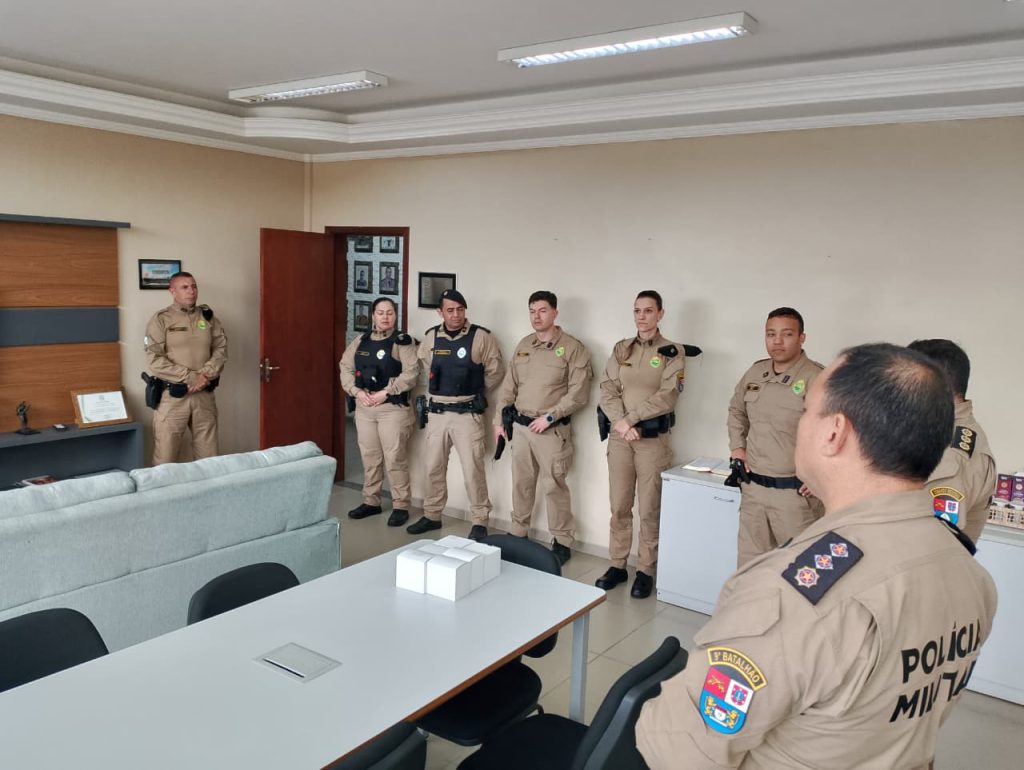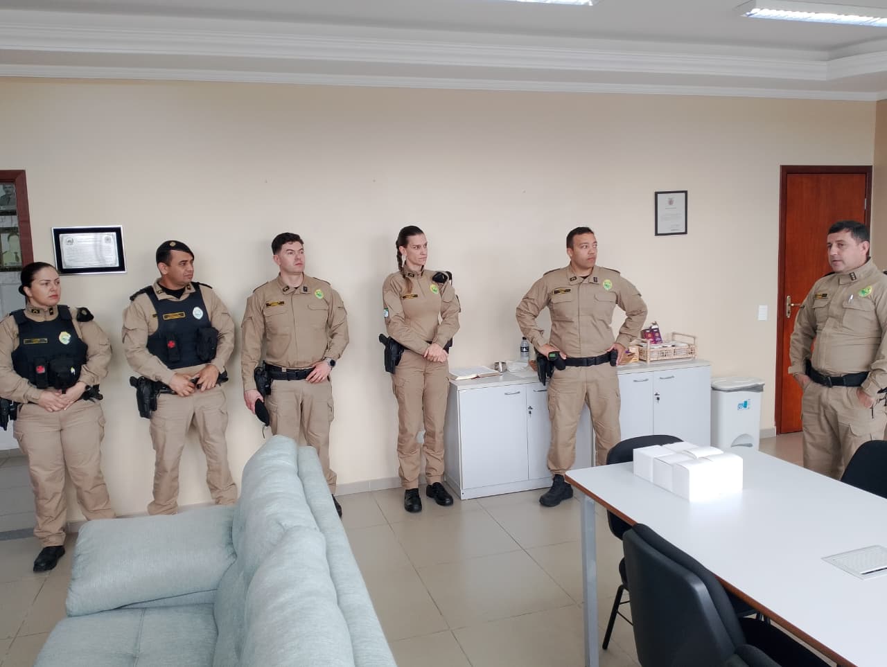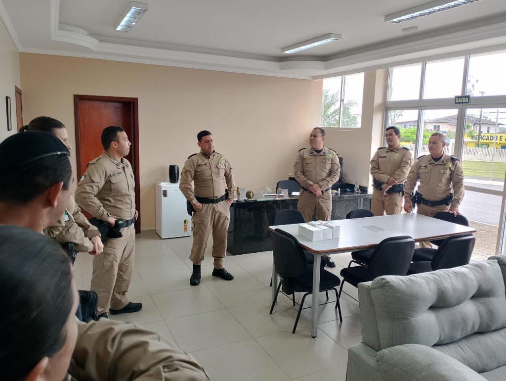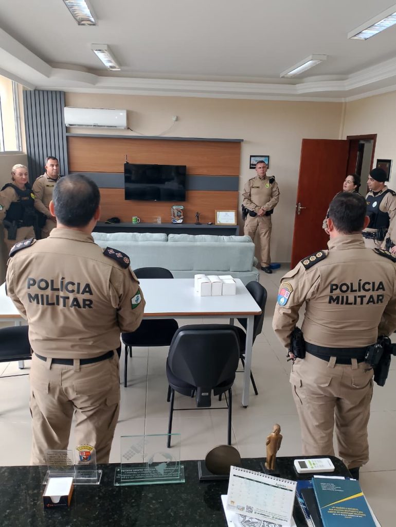 Durante a visita desta segunda-feira, o Oficial Superior agradeceu pessoalmente a colaboração dos policiais do 9º BPM e entregou canecas personalizadas do 4º Comando Regional como forma simbólica de reconhecimento pela contribuição ao desenvolvimento da estratégia de segurança na região dos Campos Gerais.