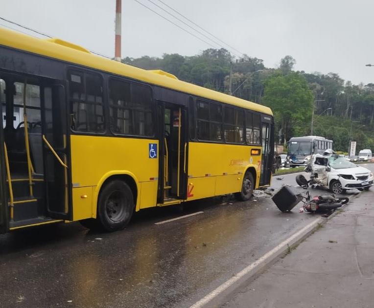 Home » Vídeo registra momento de colisão fatal entre carro, ônibus e moto em Joinville